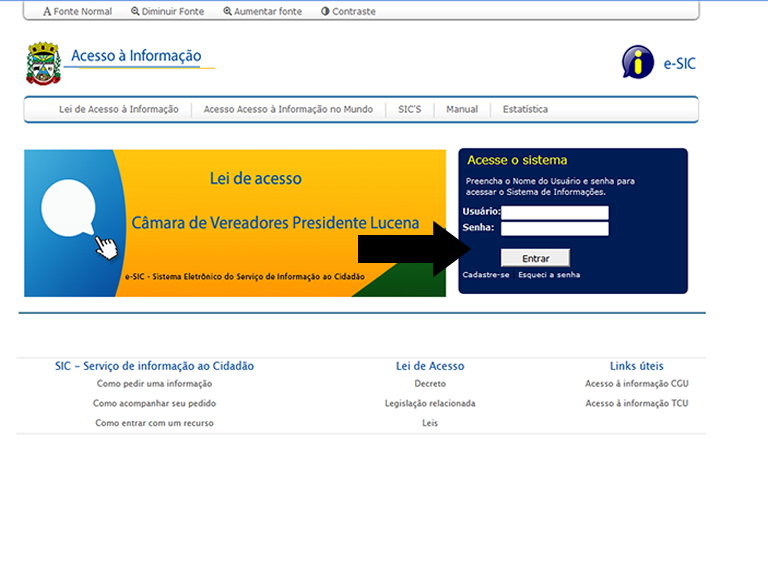 1. Entre na página do Lei de Acesso e clique no link "Cadastre-se", localizado à direita da página, dentro da caixa de login (figura abaixo);